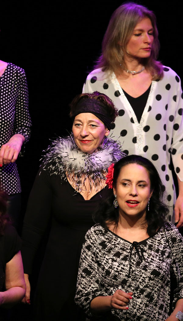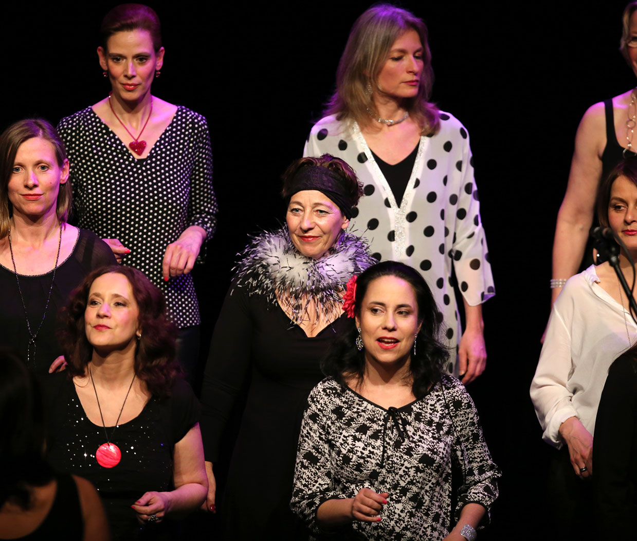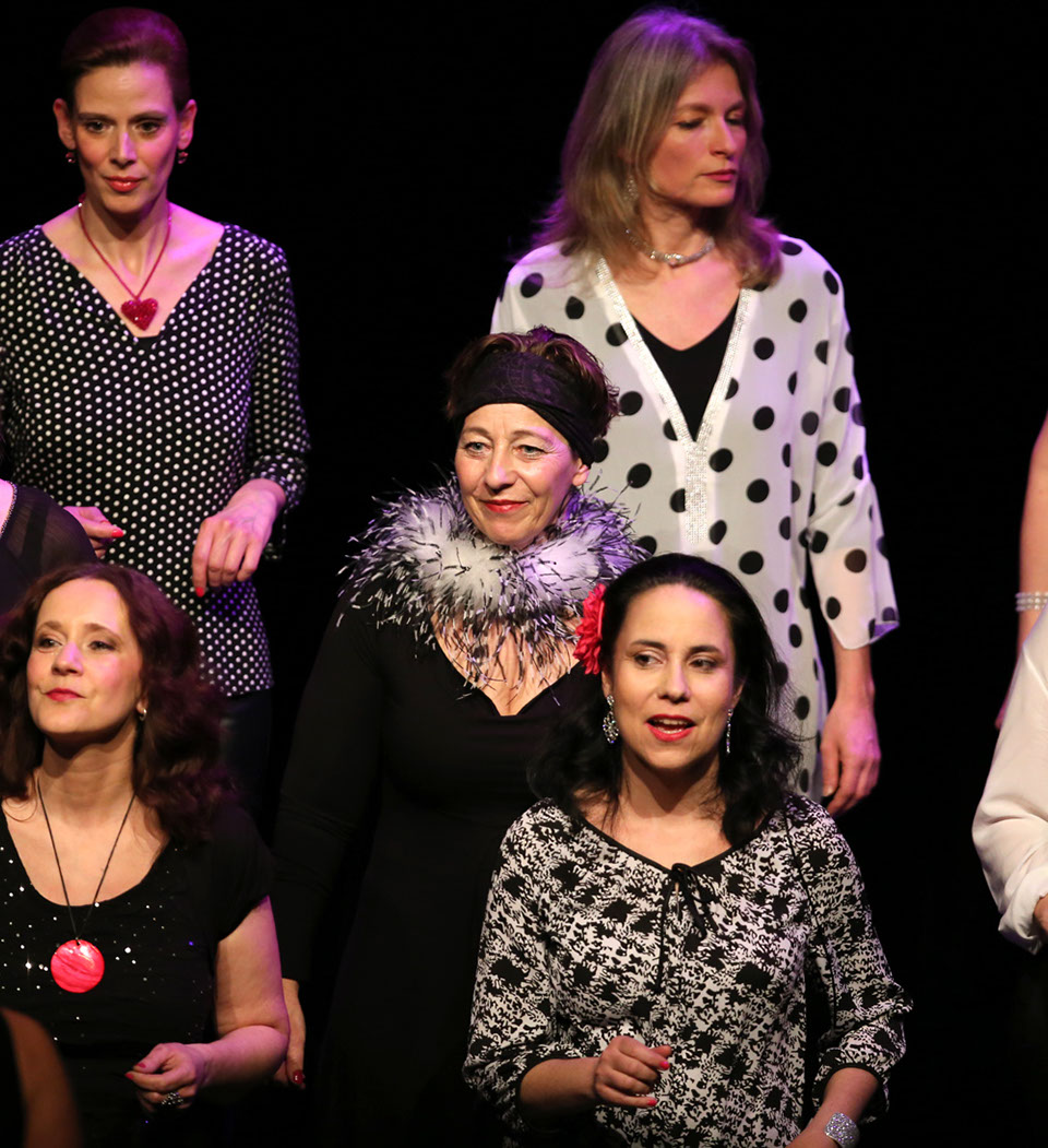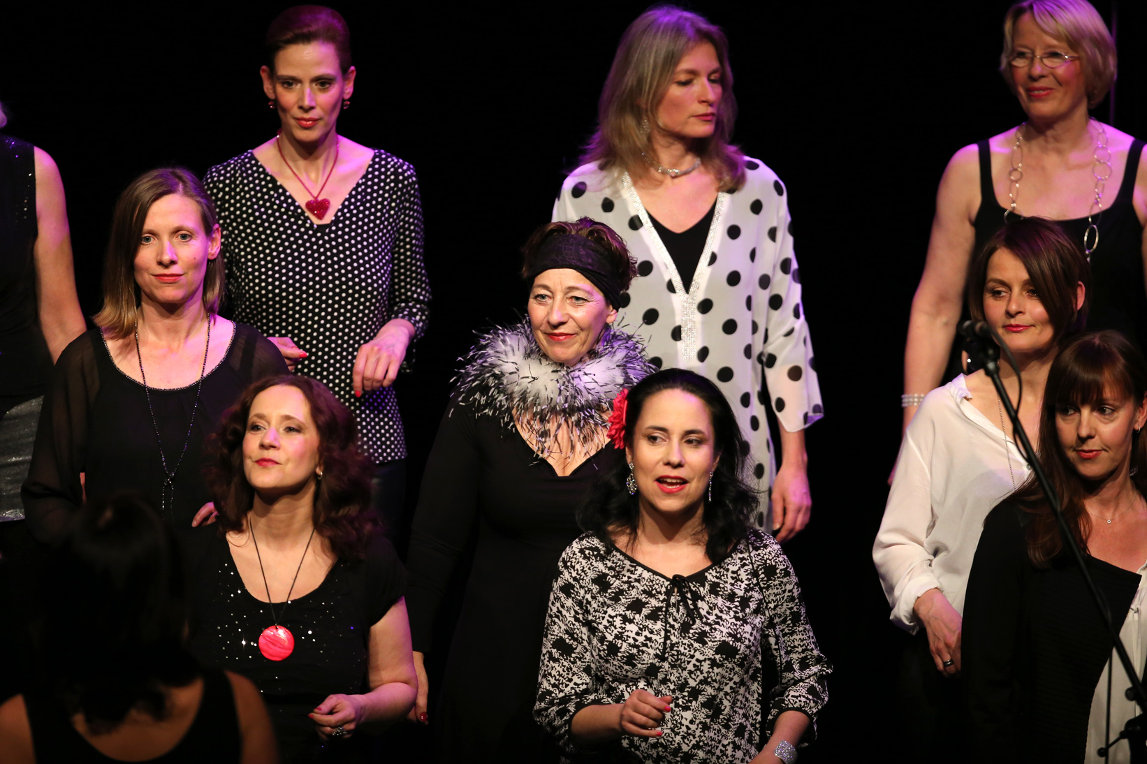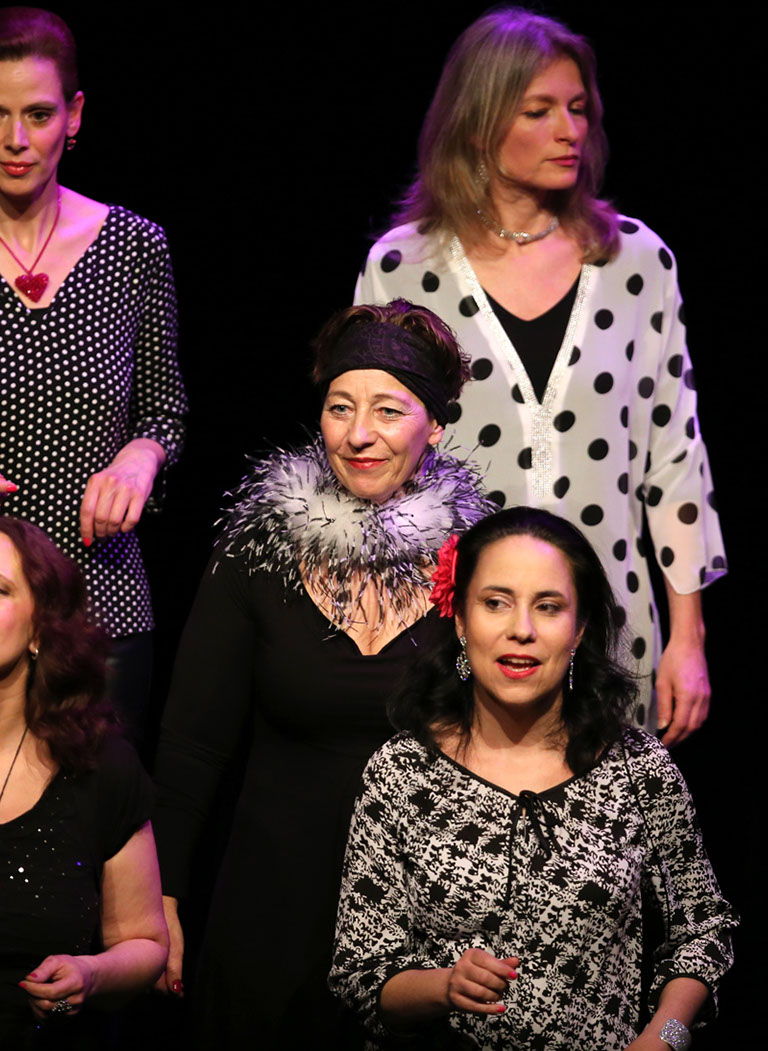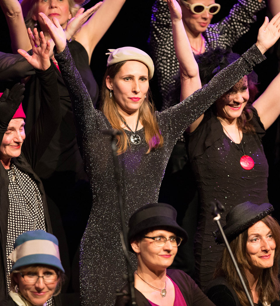 Und dies alles mit einer einzigen Chorleiterin: Mit der Sängerin und Kabarettistin Ines Martinez, die den Chor gründete, leitet, inspiriert, inszeniert und über 45 maßgeschneiderte Arrangements für ihre Damen geschrieben hat.