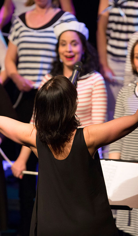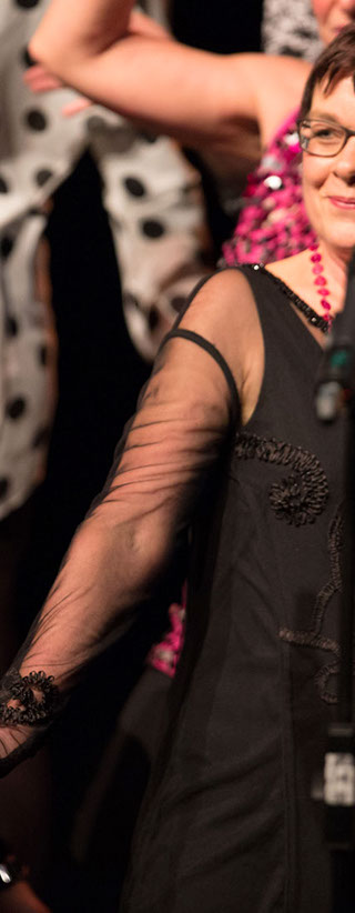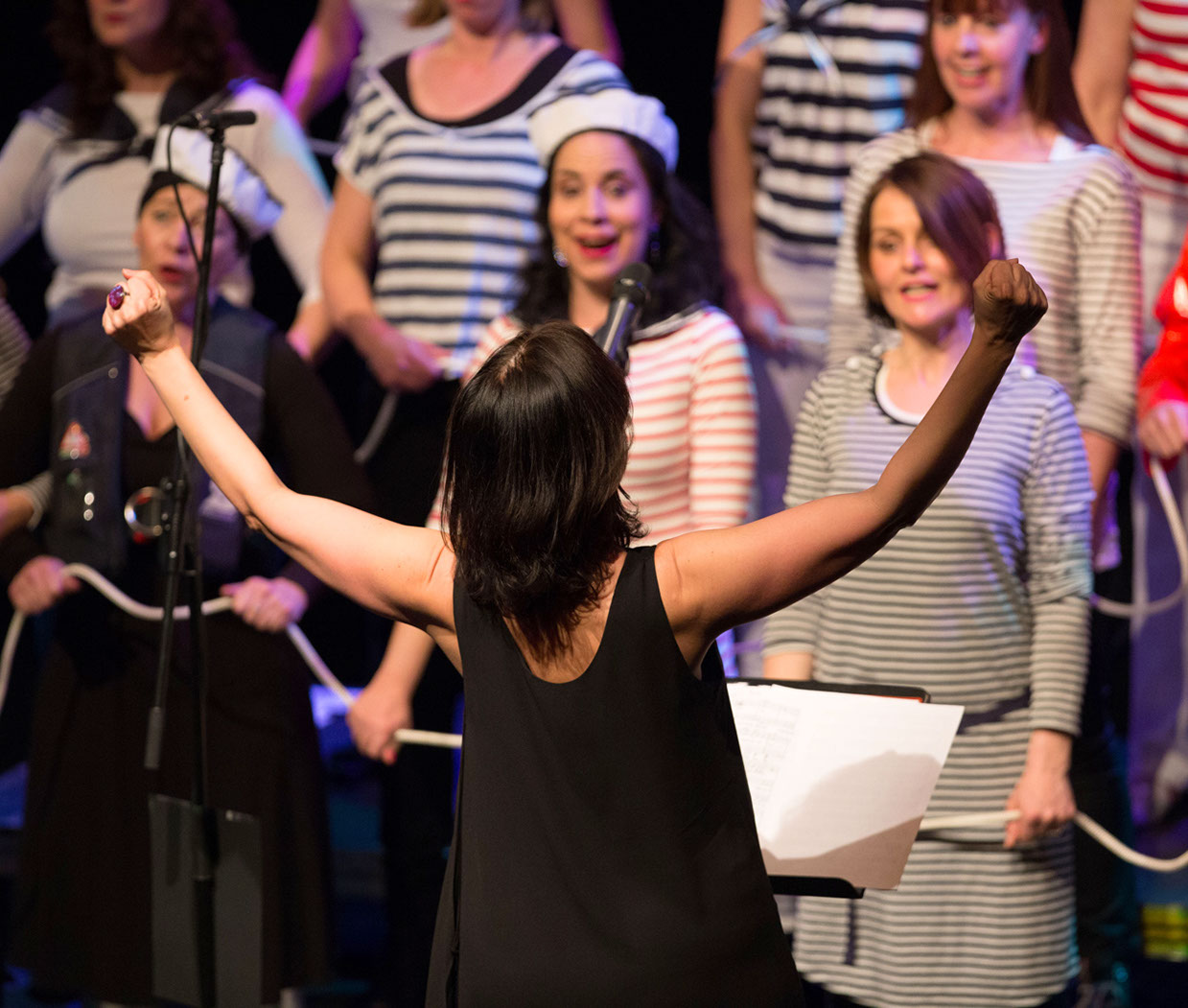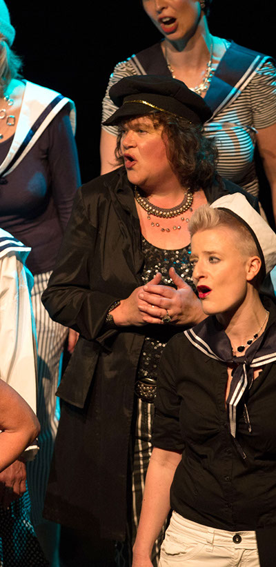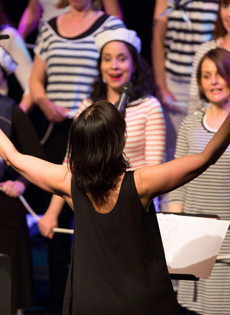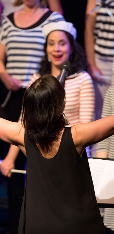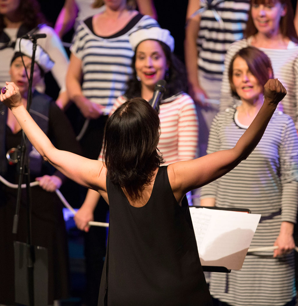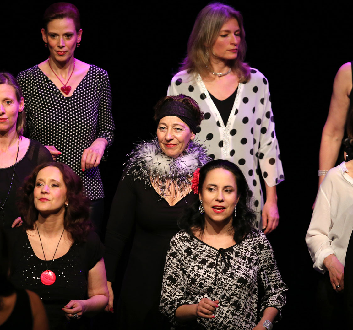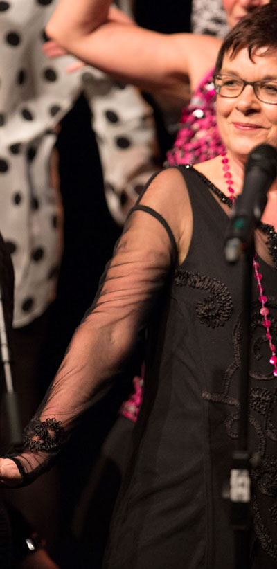 Und dies alles mit einer einzigen Chorleiterin: Mit der Sängerin und Kabarettistin Ines Martinez, die den Chor gründete, leitet, inspiriert, inszeniert und über 45 maßgeschneiderte Arrangements für ihre Damen geschrieben hat.