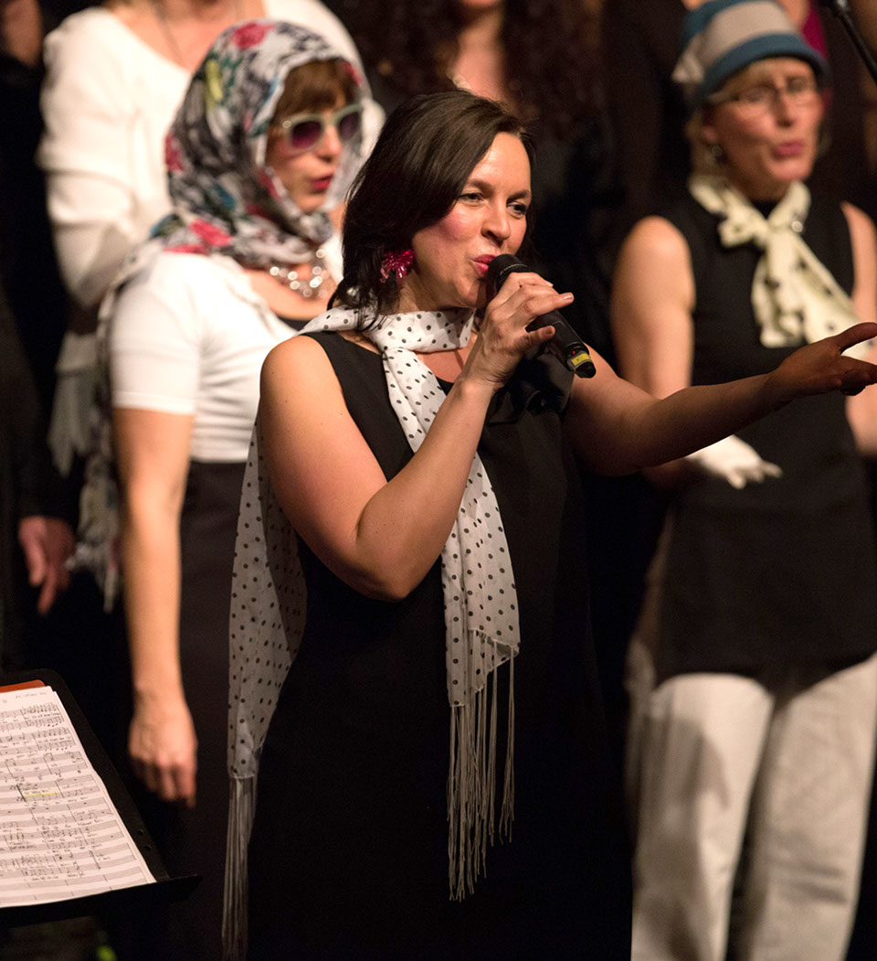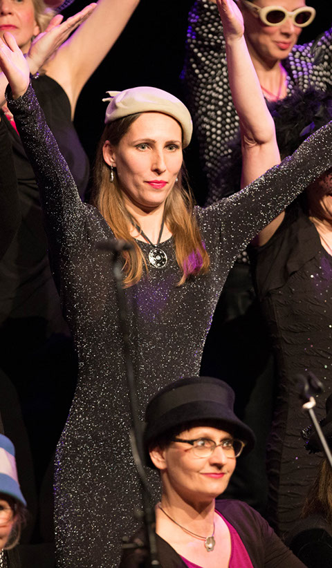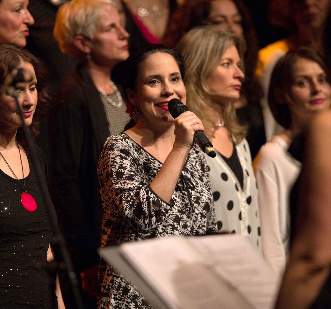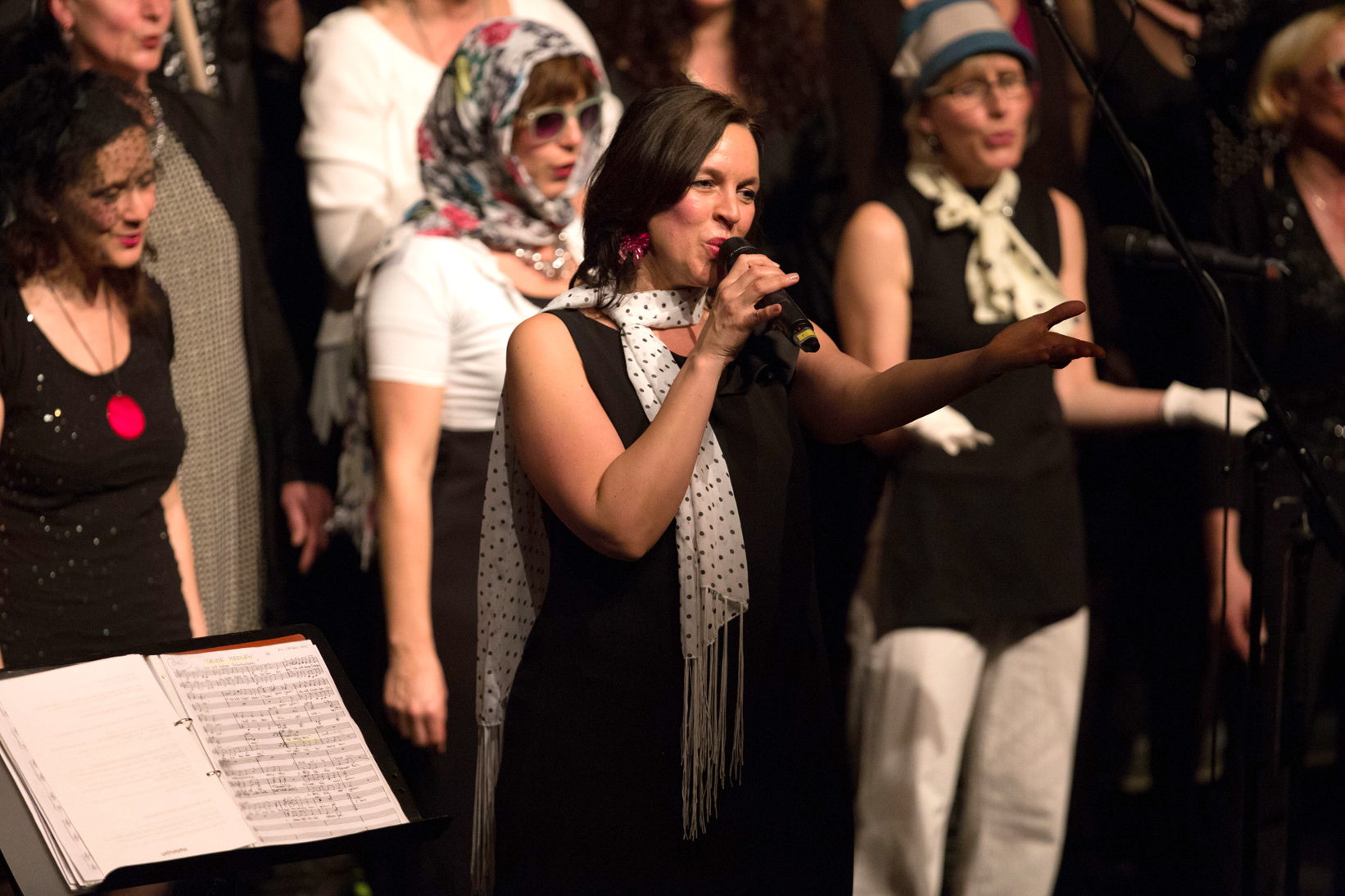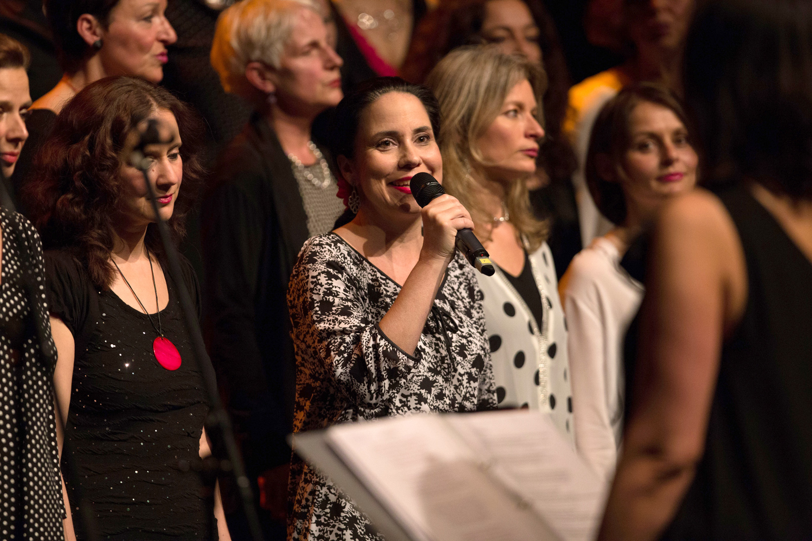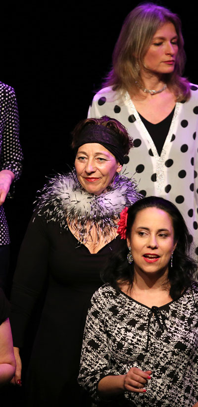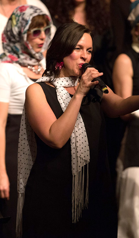 Und dies alles mit einer einzigen Chorleiterin: Mit der Sängerin und Kabarettistin Ines Martinez, die den Chor gründete, leitet, inspiriert und inszeniert.