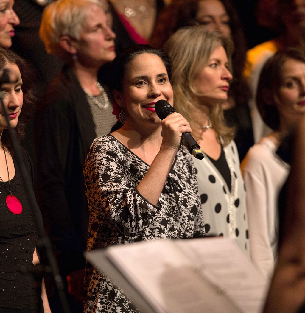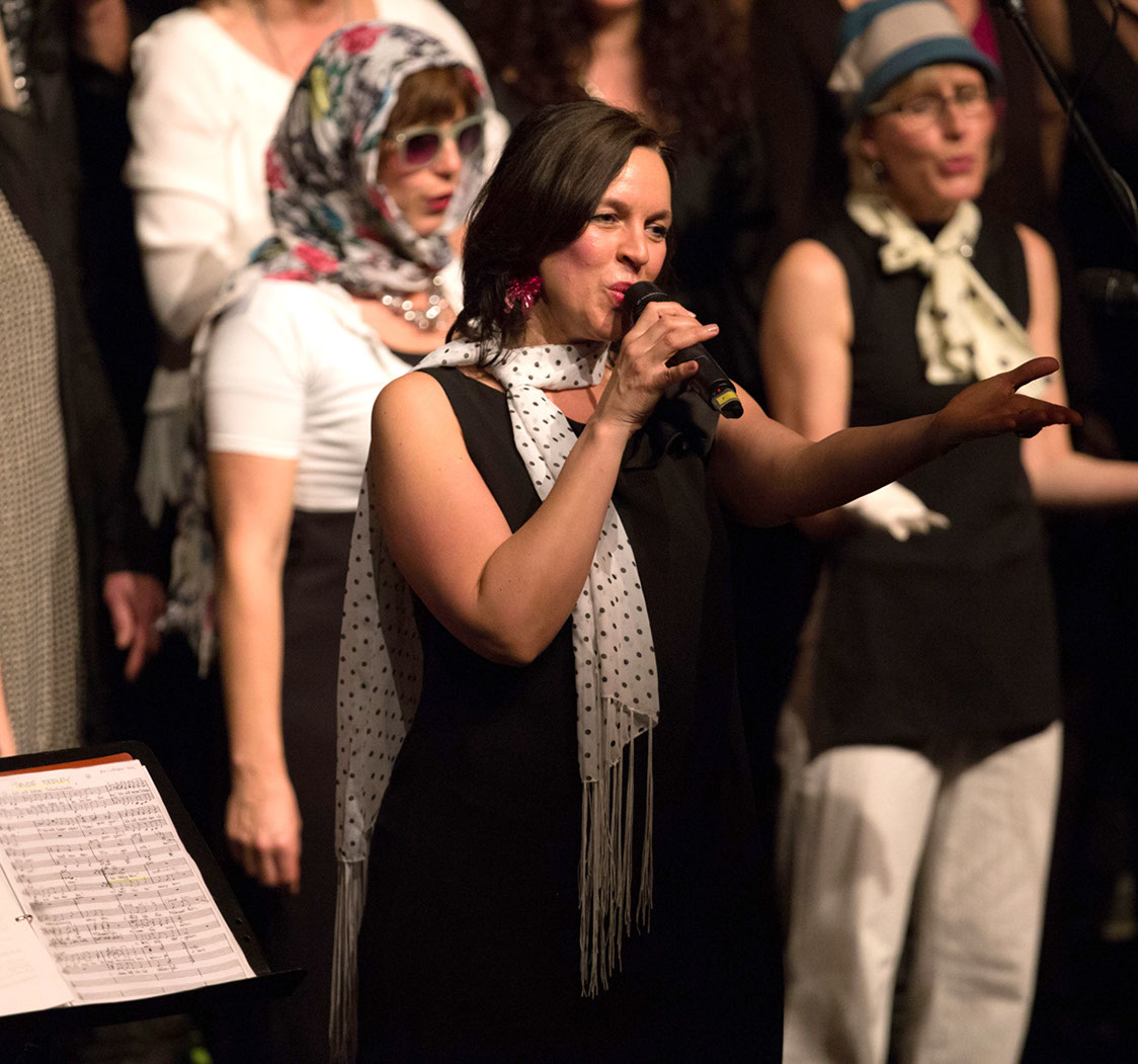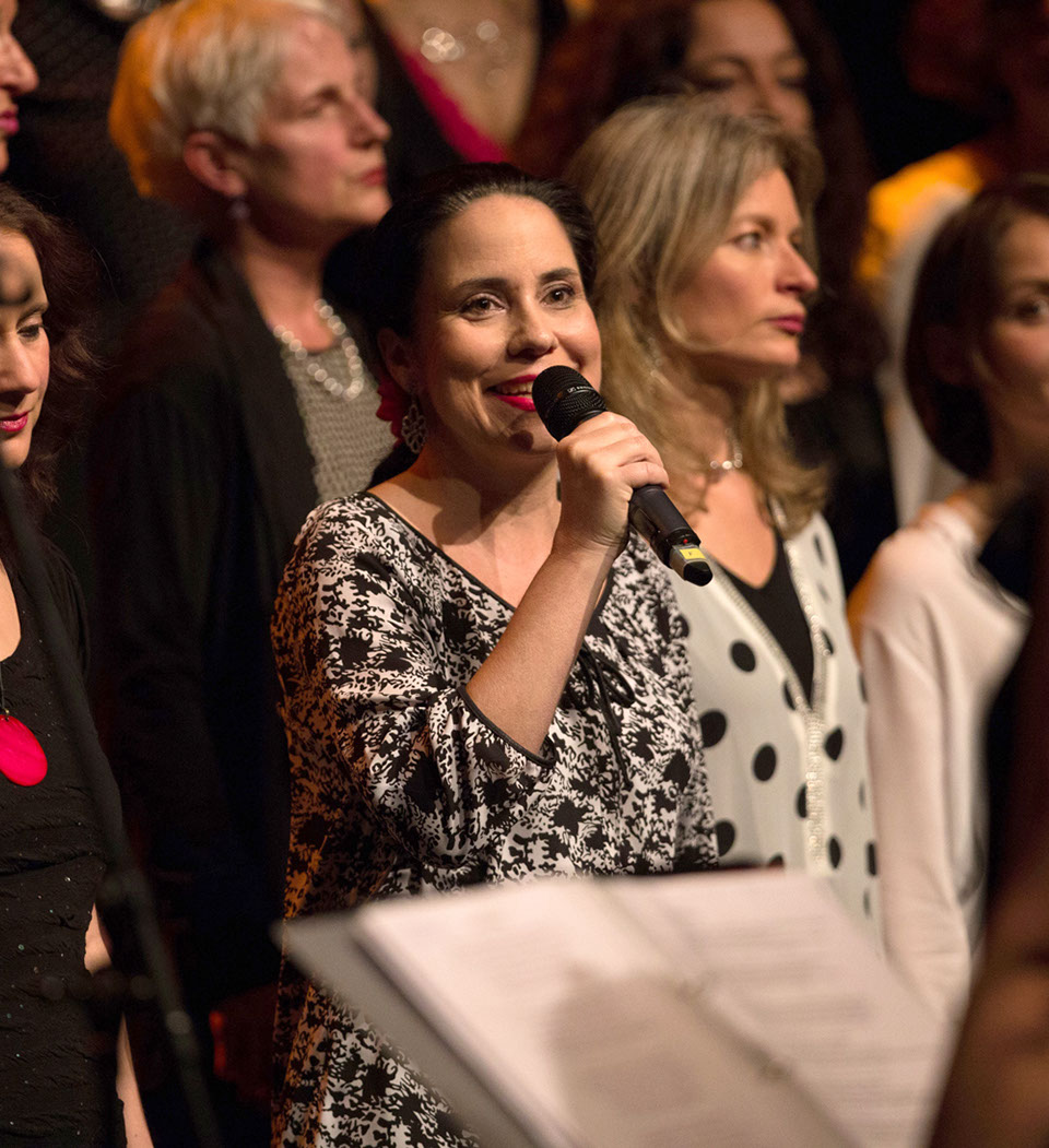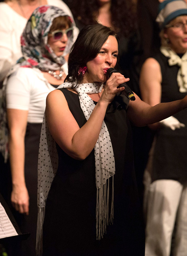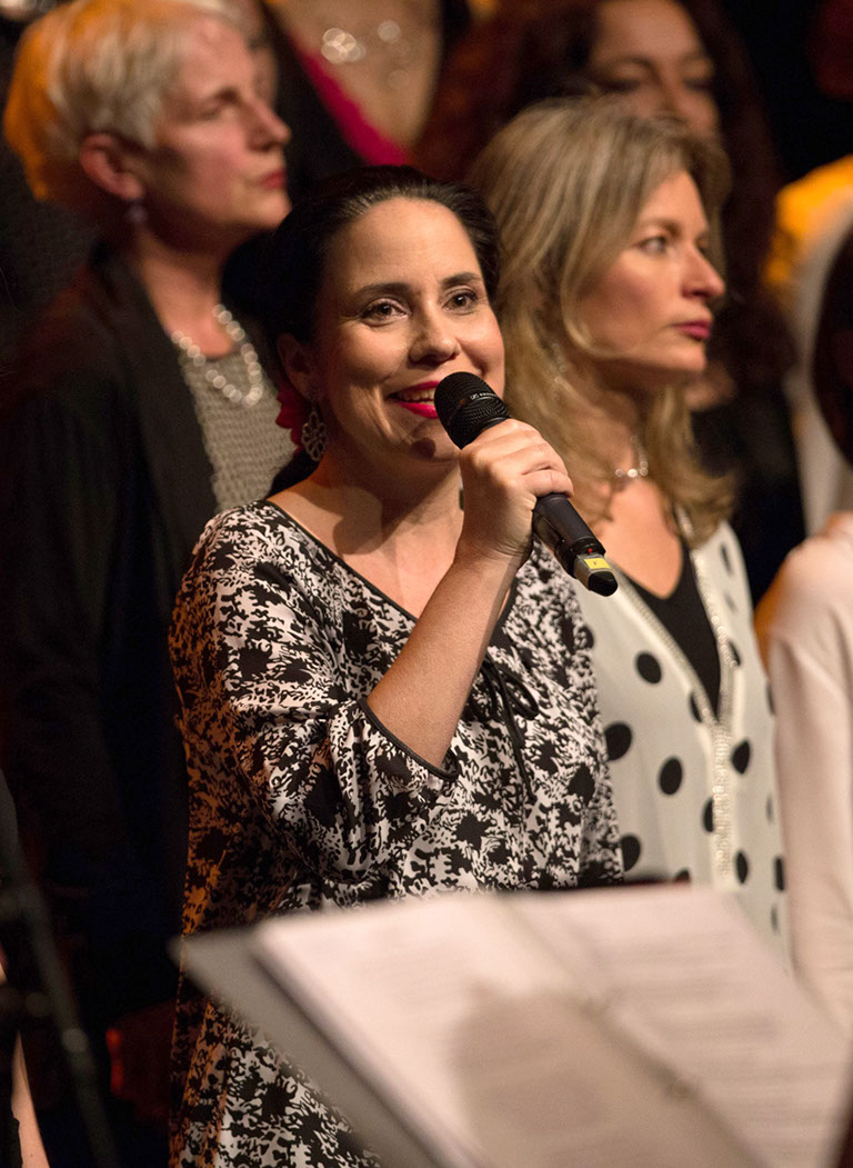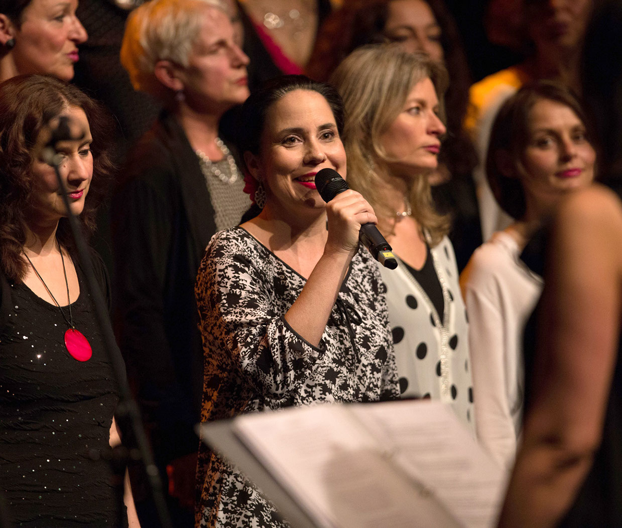 Und dies alles mit einer einzigen Chorleiterin: Mit der Sängerin und Kabarettistin Ines Martinez, die den Chor gründete, leitet, inspiriert und inszeniert.
