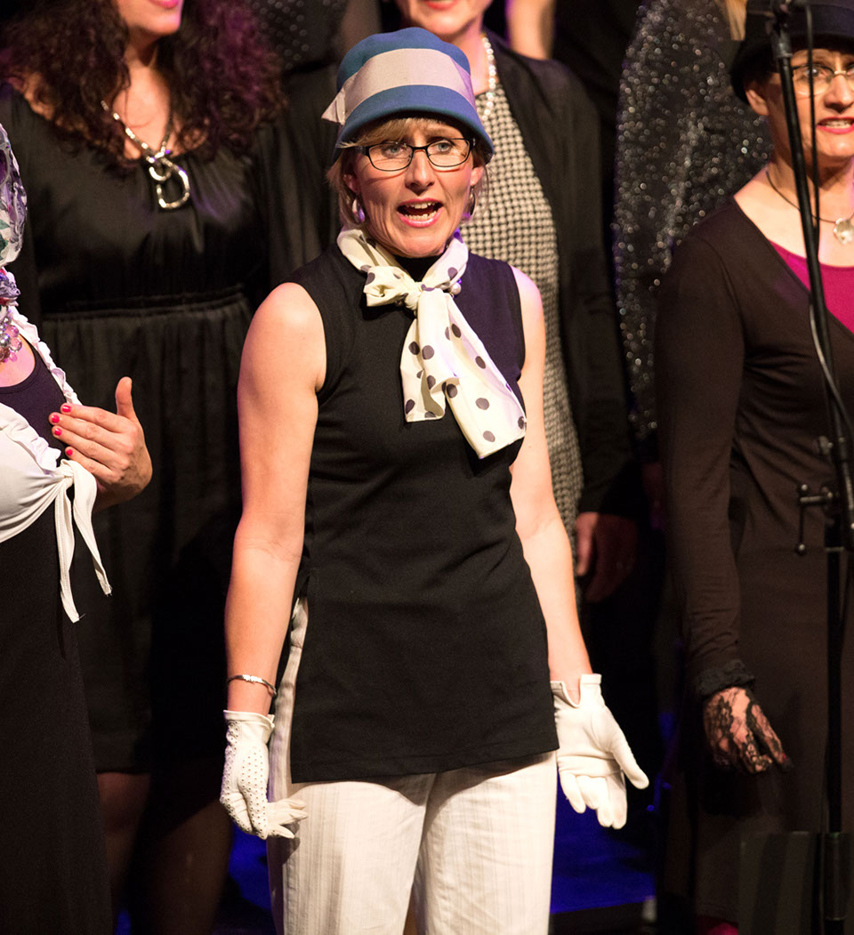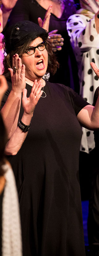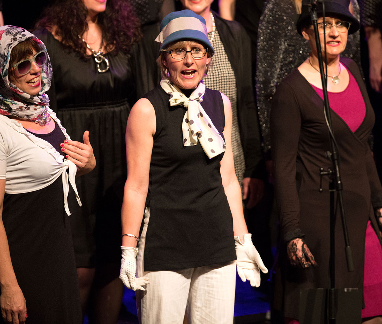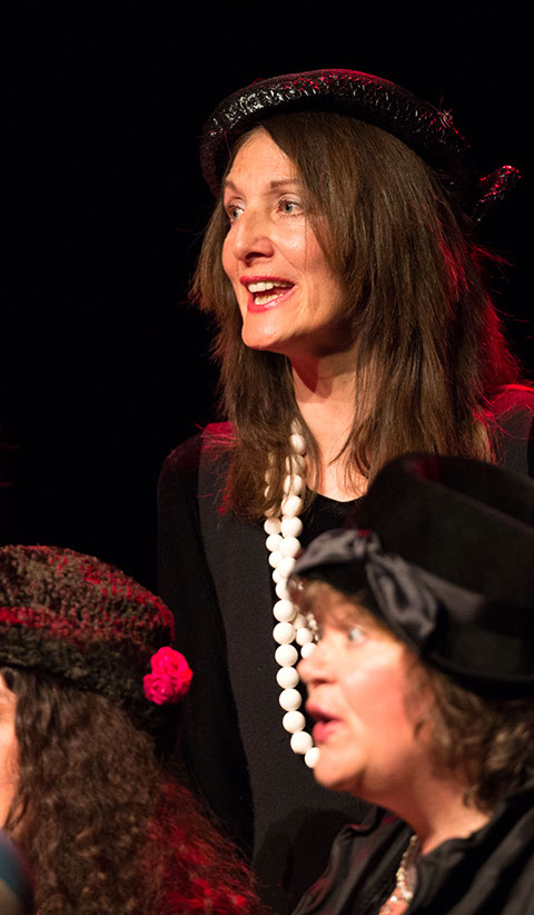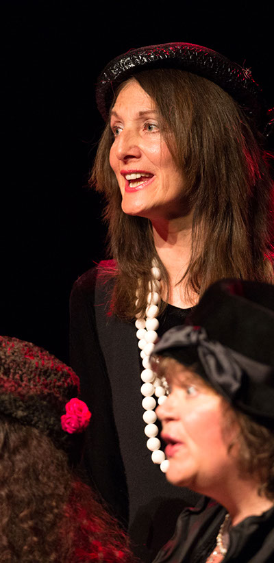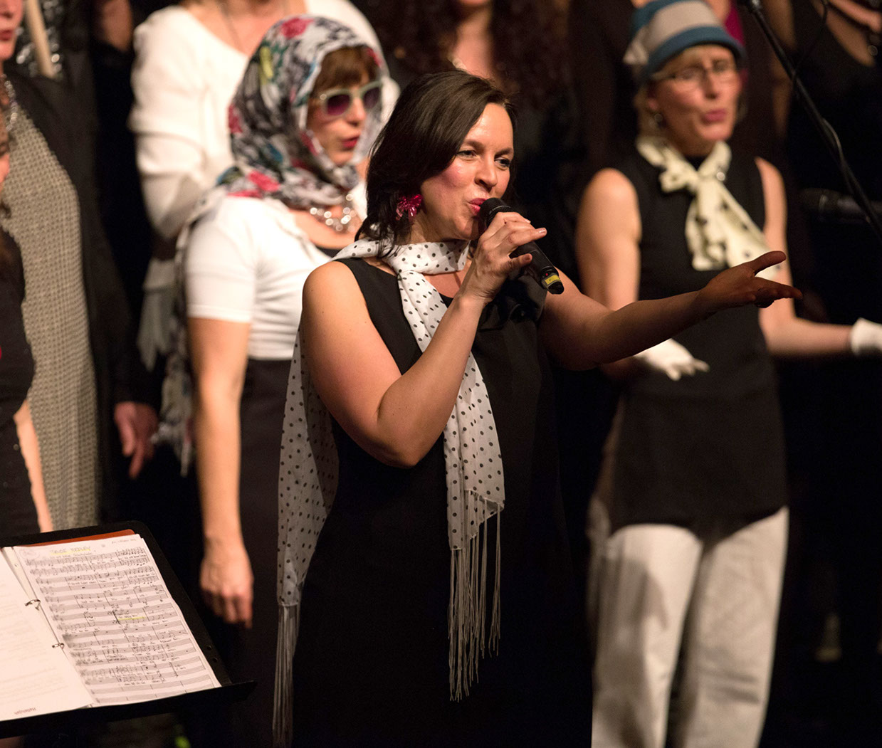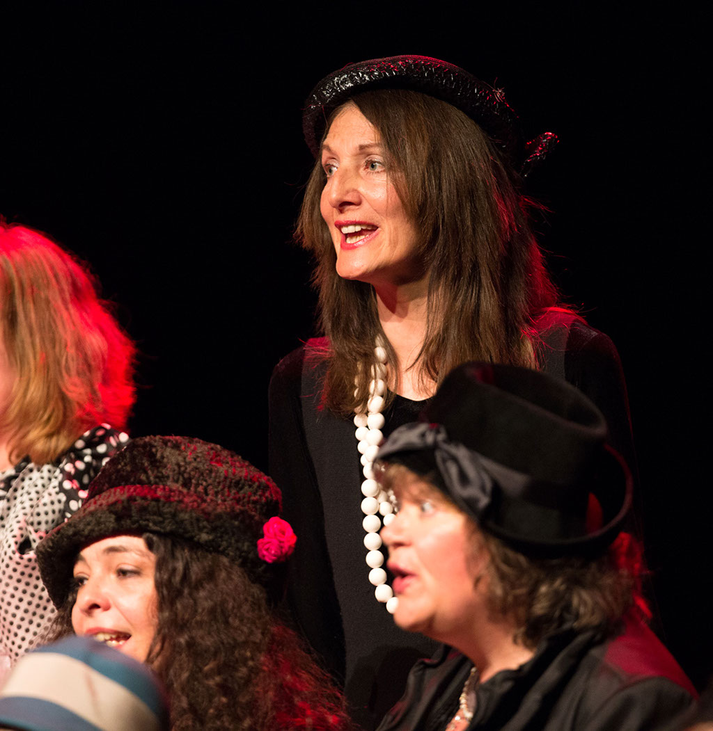 Und dies alles mit einer einzigen Chorleiterin: Mit der Sängerin und Kabarettistin Ines Martinez, die den Chor gründete, leitet, inspiriert und inszeniert.