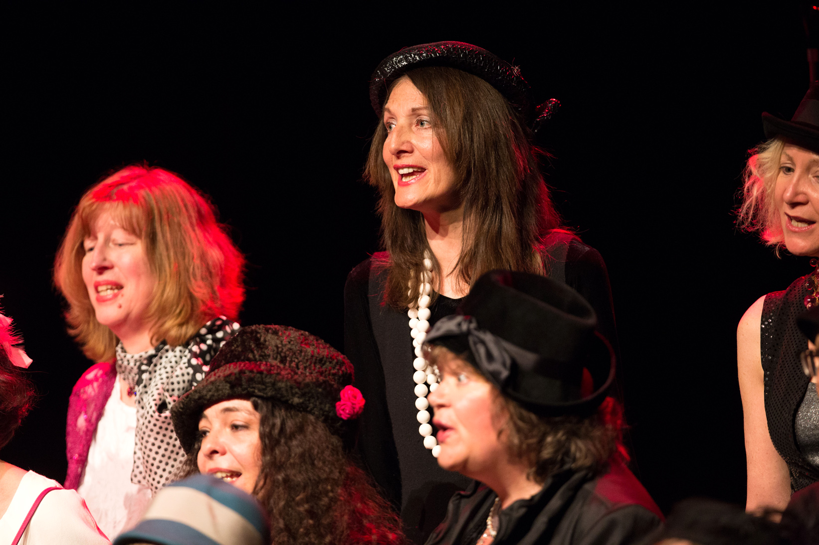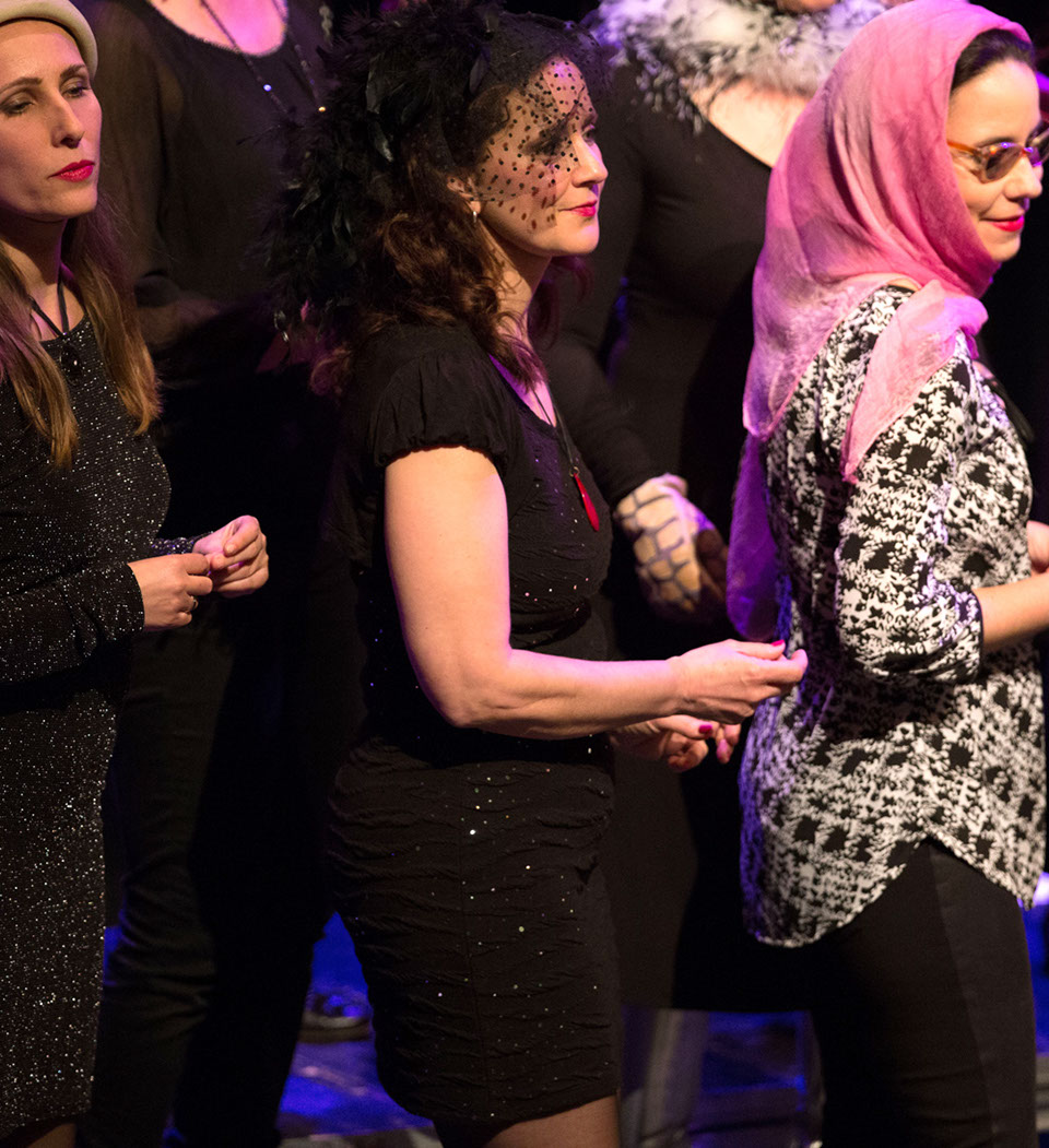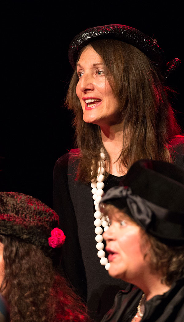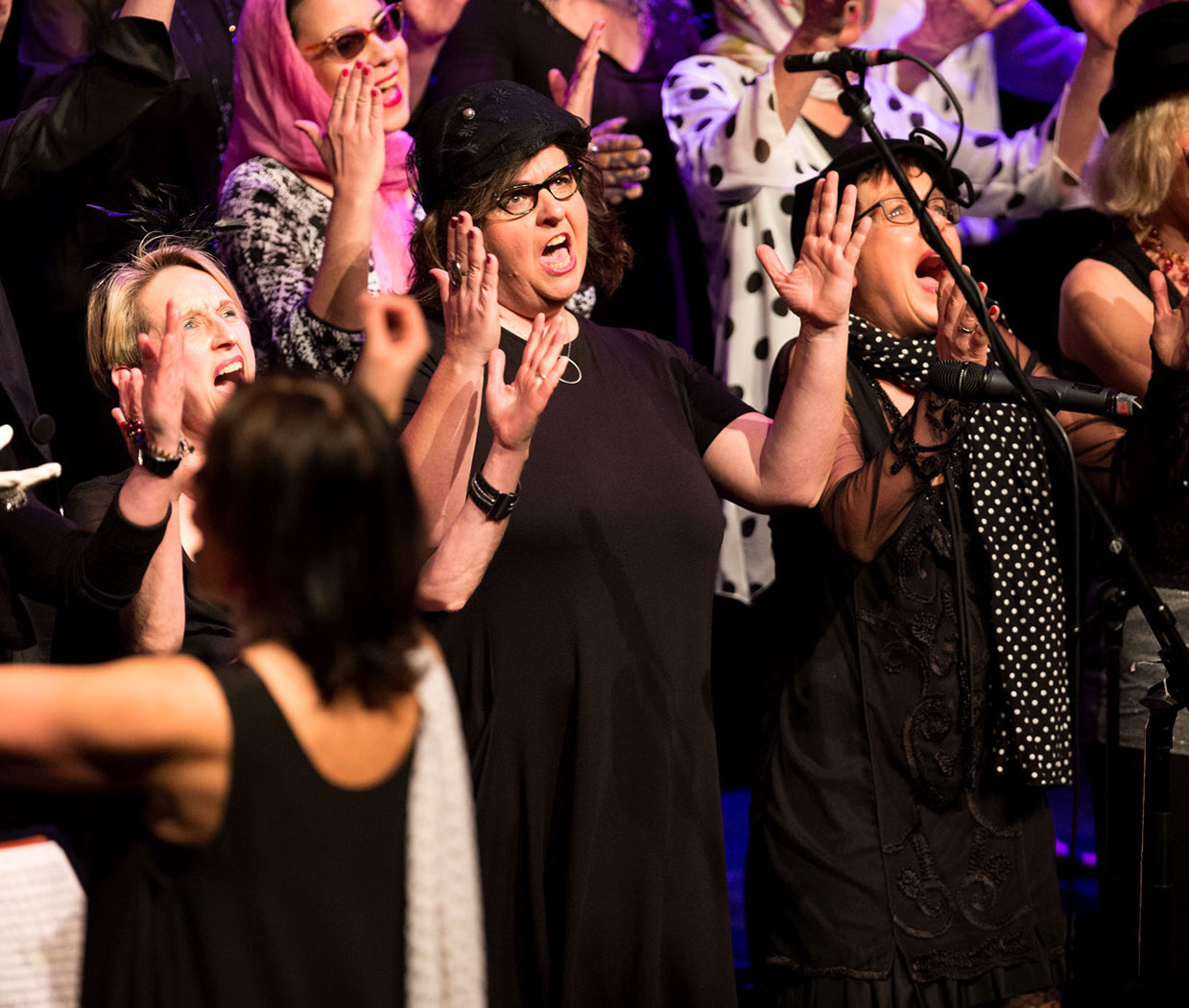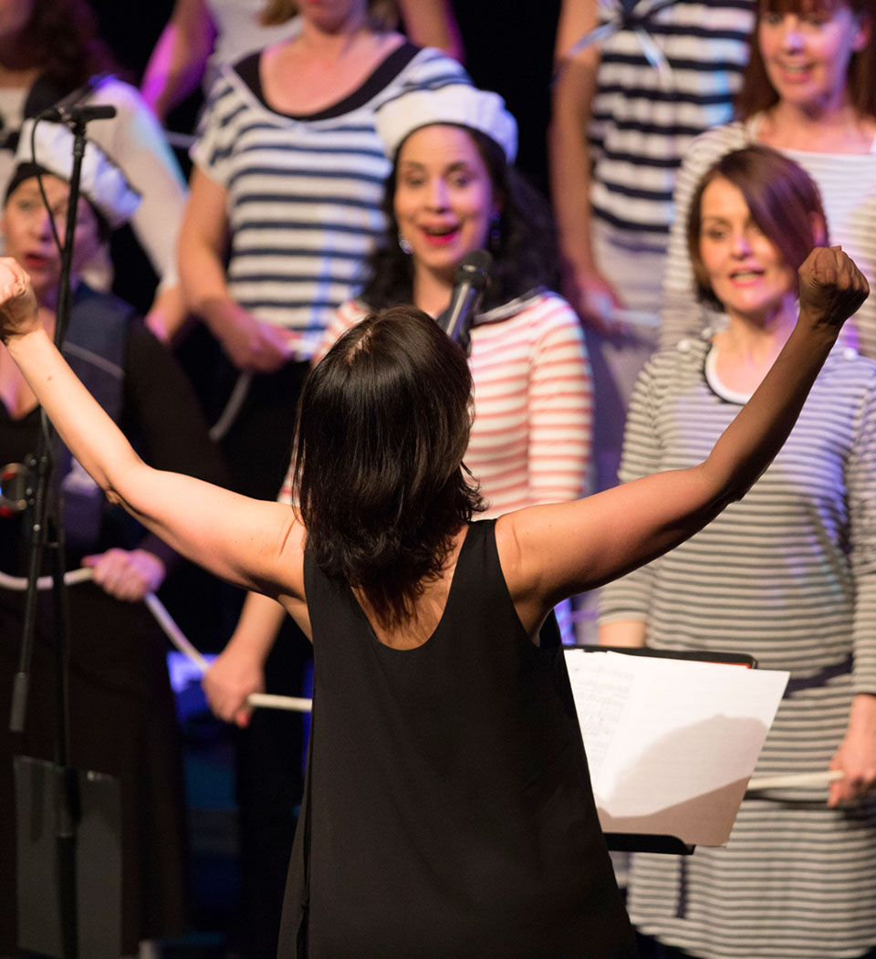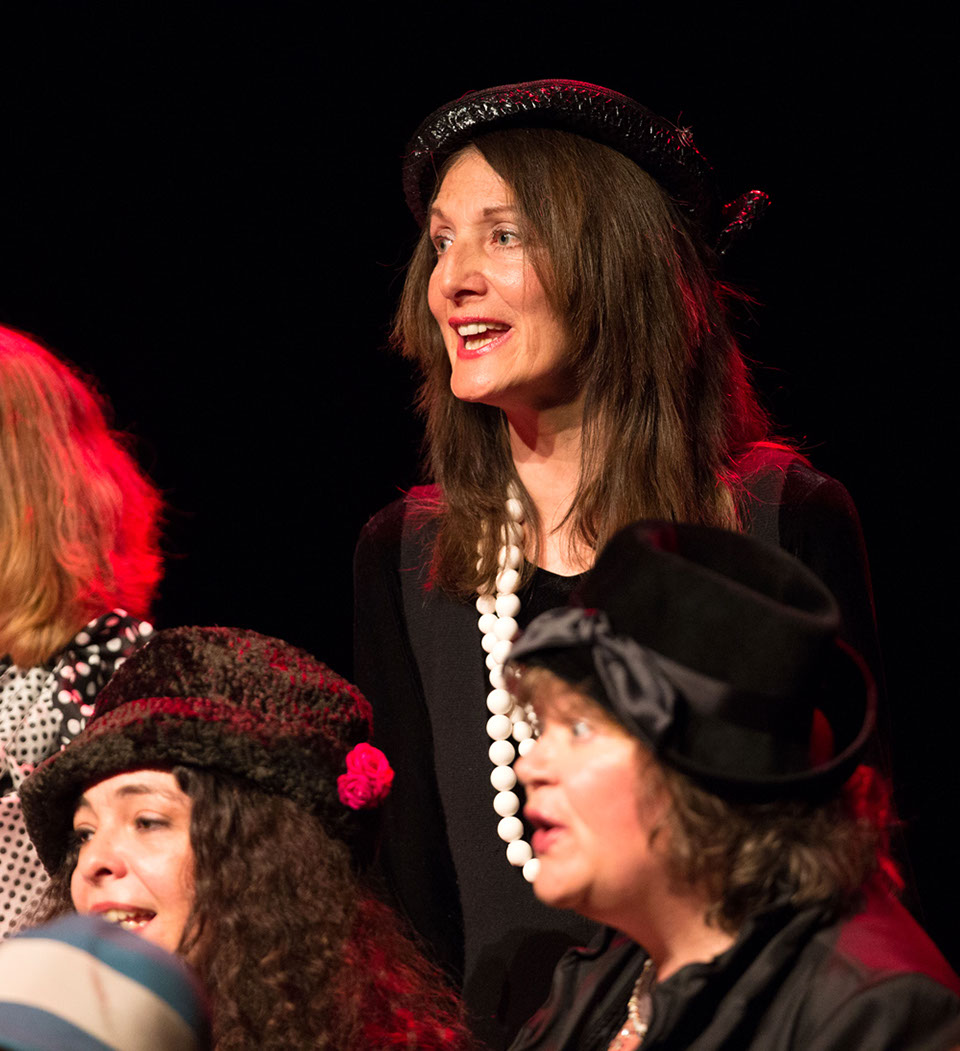 Und dies alles mit einer einzigen Chorleiterin: Mit der Sängerin und Kabarettistin Ines Martinez, die den Chor gründete, leitet, inspiriert und inszeniert.